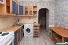 Имеется застекленный балкон. Кухонный гарнитур, обеденная зона, Встроенная стенка в комнате на полу ламинат. Диван-кровать. В коридоре шкаф-купе.