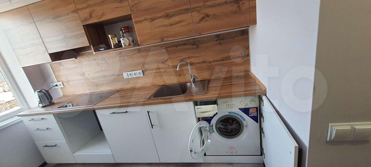 Вмeстительный шкафа-купе, дивaн, телевизор, кондиционер, стиральная машина-автомат, холодильник, кухонный гарнитур с варочной поверхностью, микроволновая печь, гладильная доска, сушилка, кухонный стол, 2 стула, чайник.