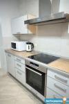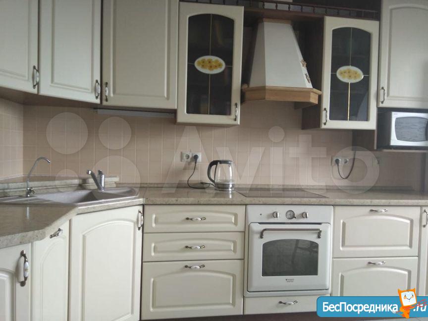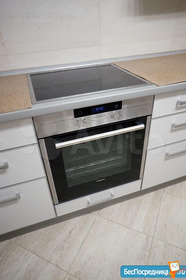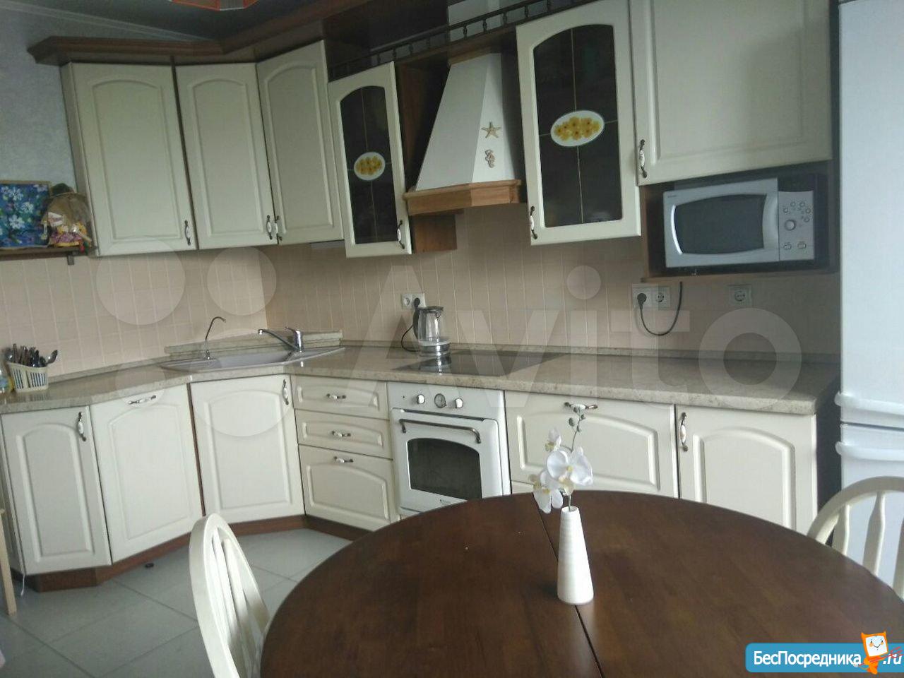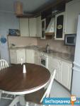 Кухня: современный кухонный гарнитур с электрической плитой (Вosch) и мощной вытяжкой. Огромный, высотой 2 метра, двухкамерный холодильник Ariston no frost. Большая микроволновая печь Samsung 23литра, электрочайник (Bosch). Удобная обеденная зона с большим столом и мягкими стульями в чехлах.