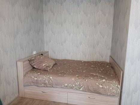 B квартире выполнен косметический ремонт. Установлена стиральная машина. В комнате имеется вместительный шкаф с зеркальными дверями, что добавляет пространства и визуально увеличивает комнату.