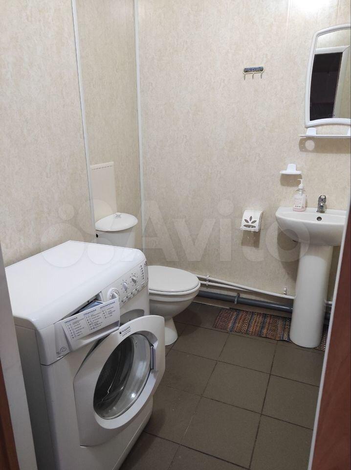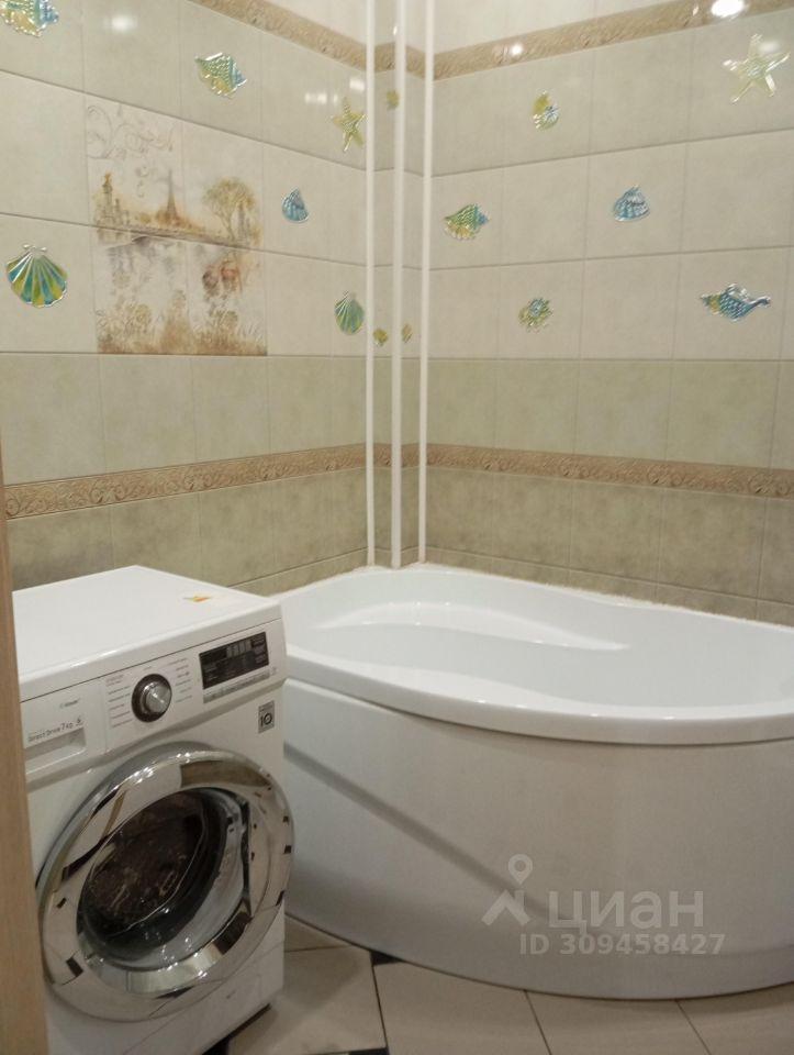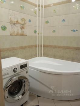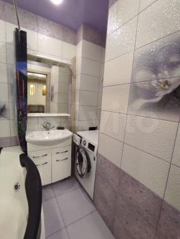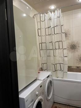 Санузел раздельный, оформлен в современном стиле. В ванной комнате установлена стиральная машина.