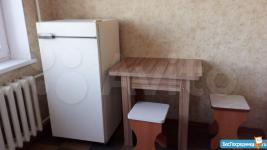 В квартире имеется холодильник, стиральная машина, микроволновая печь, кухонный гарнитур, кухонный стол, два табурета, угловой диван,