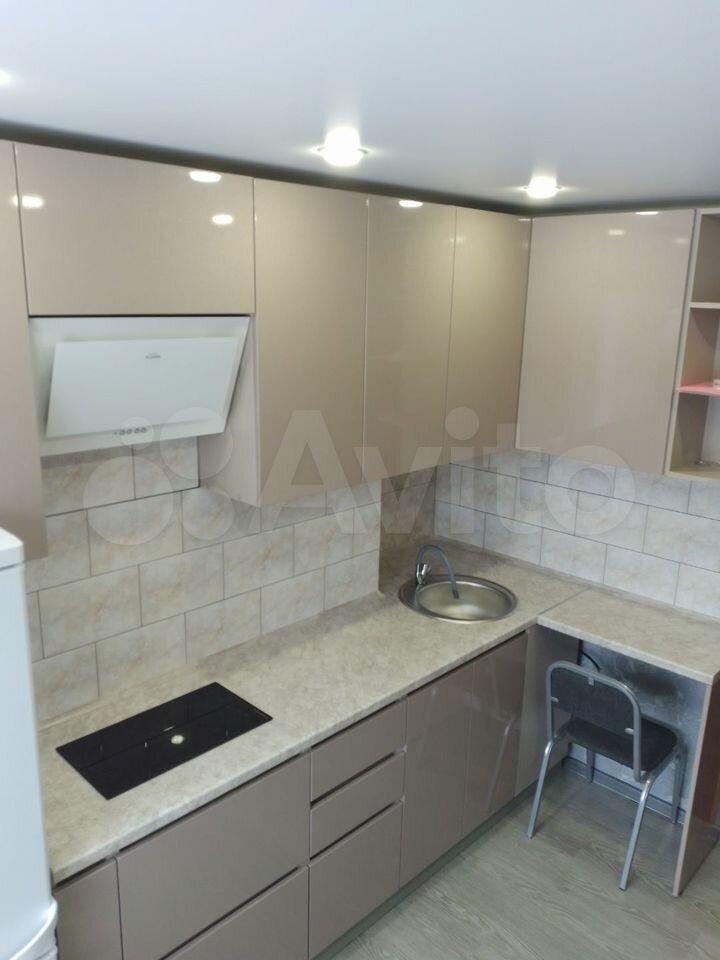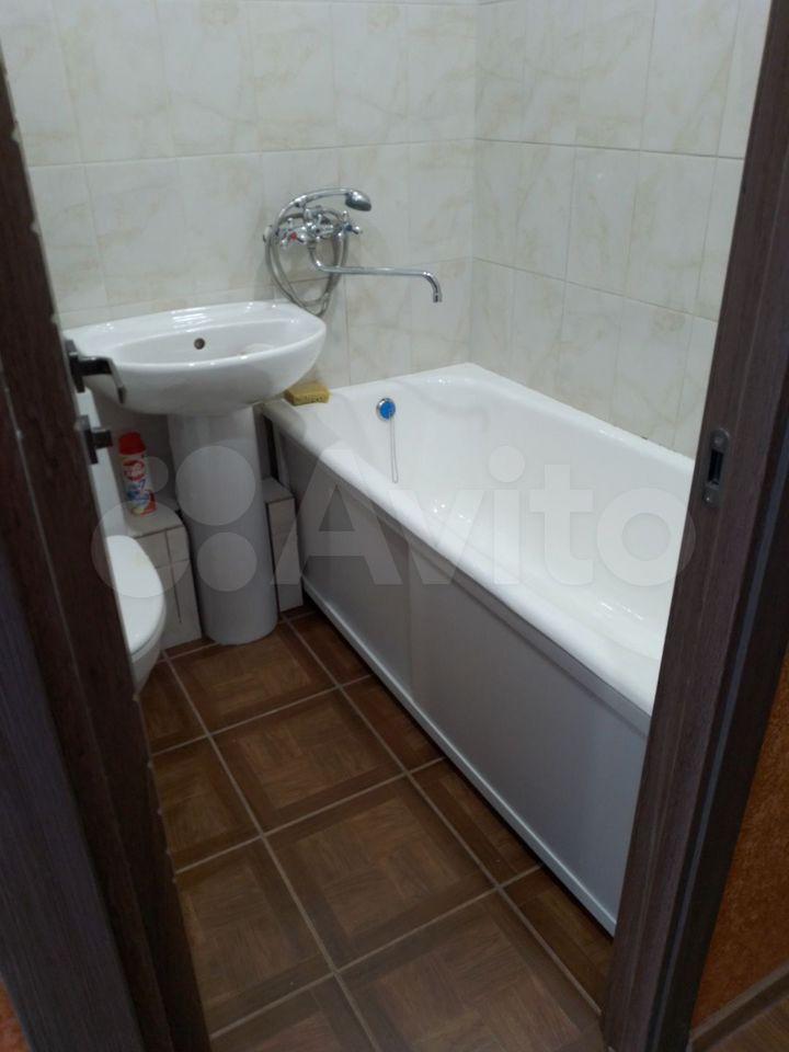 Кухня компактная, оснащена необходимой бытовой техникой: холодильником, микроволновой печью и стиральной машиной. Санузел совмещенный, оформлен в светлых тонах. Из окон открывается вид на тихий двор с открытой парковкой.