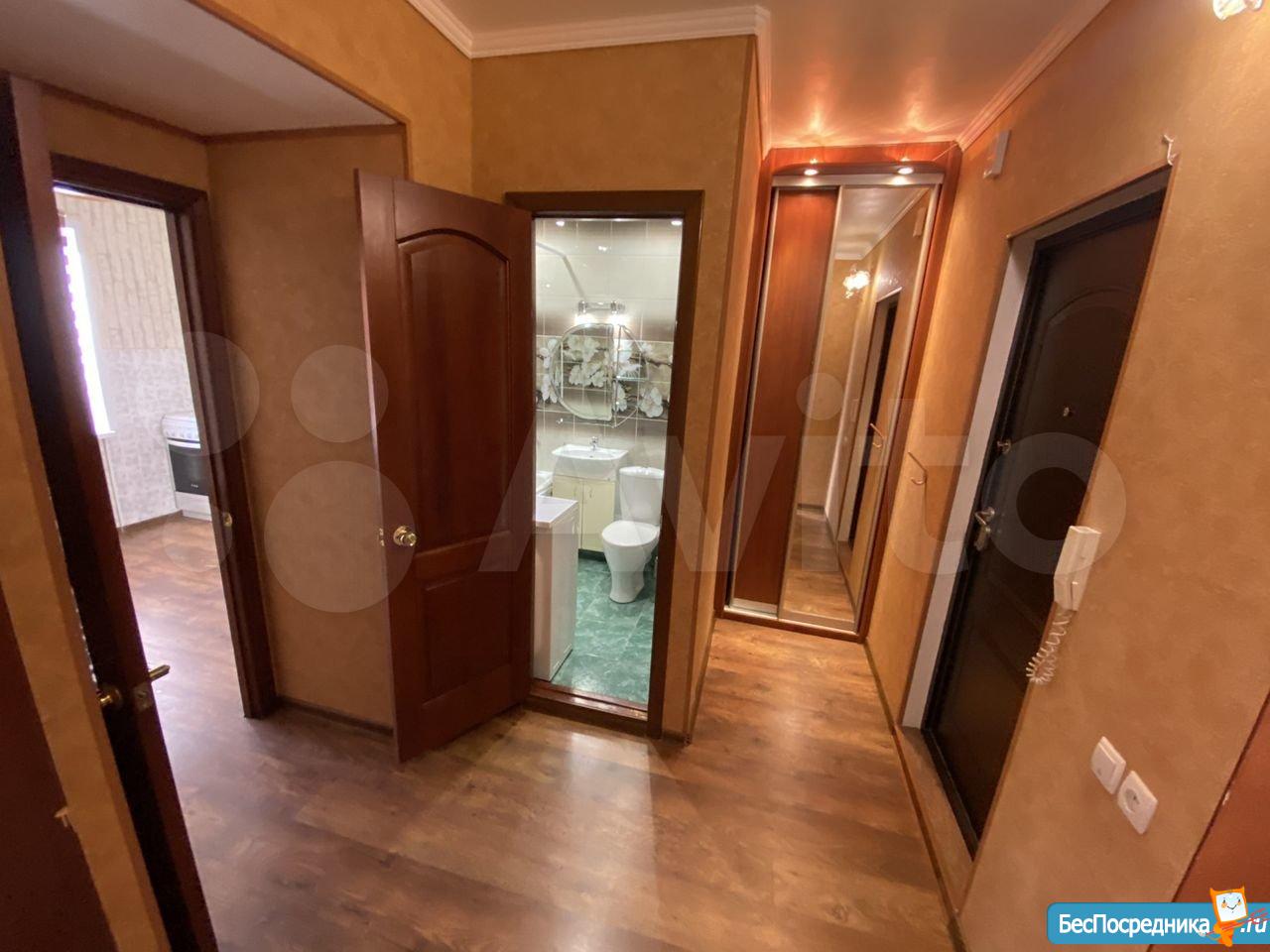Сдаётся уютная однокомнатная квартира 38 кв.м., с отличным ремонтом по адресу улица Дмитриева 1/2. Имеется два шкафа-купе, кухонный гарнитур, стиральная машина автомат, холодильник, диван, кухонный стол с двумя стульями. Застекленная лоджия, отделанная деревом со встроенным шкафом. Окна ПВХ. Квартира сдаётся на длительный срок. До ТЦ Мега, ТЦ Континент 5 минут. Собственник (сдаётся квартира без комиссии) Стоимость 13500 руб. + квартплата К/У 3500 руб.
