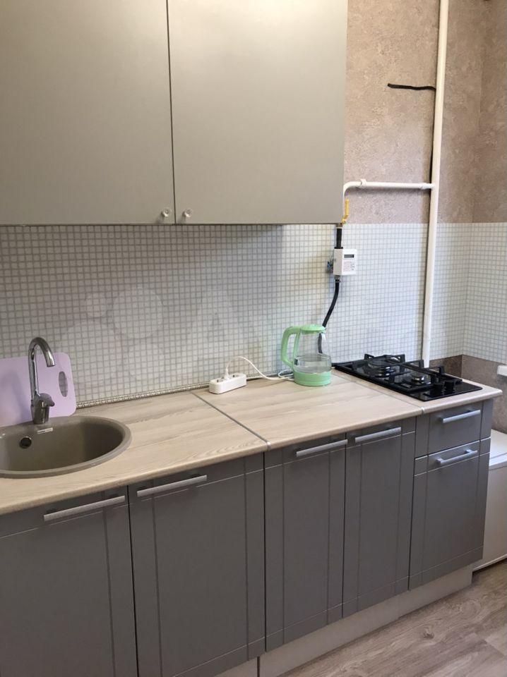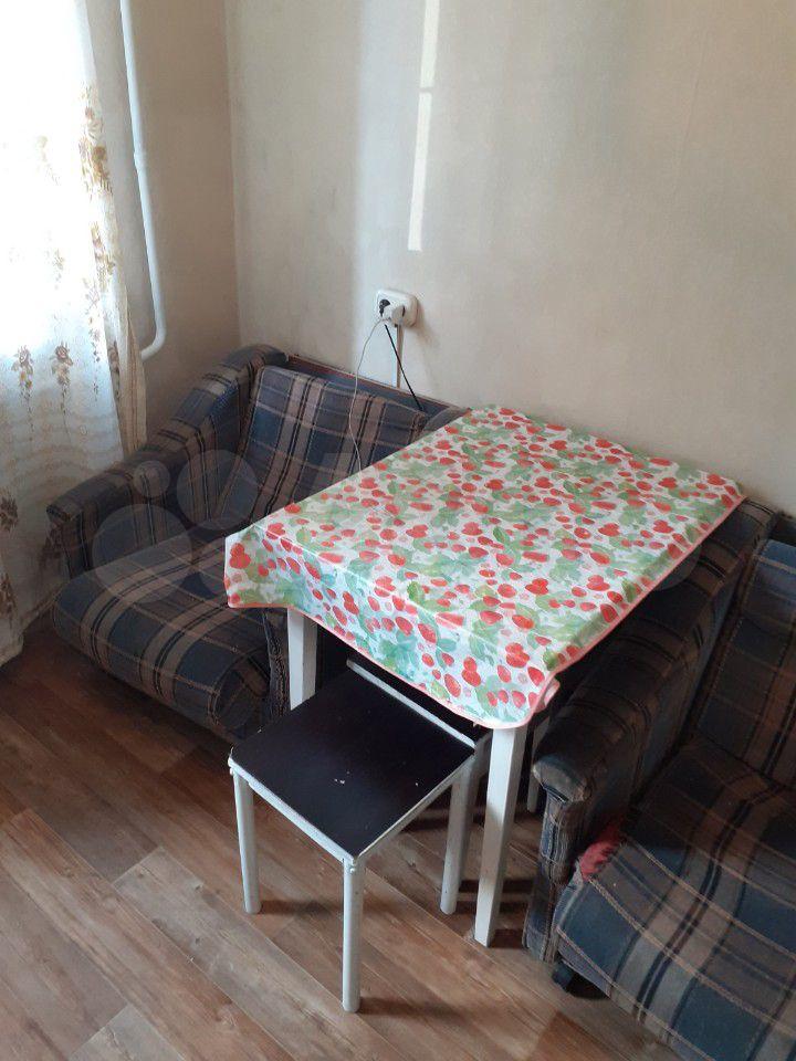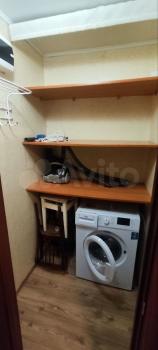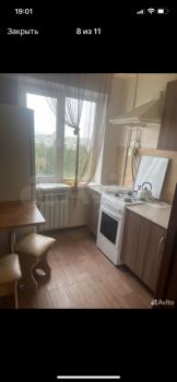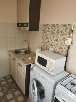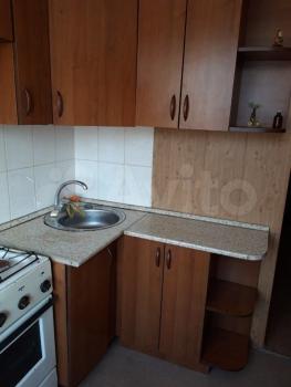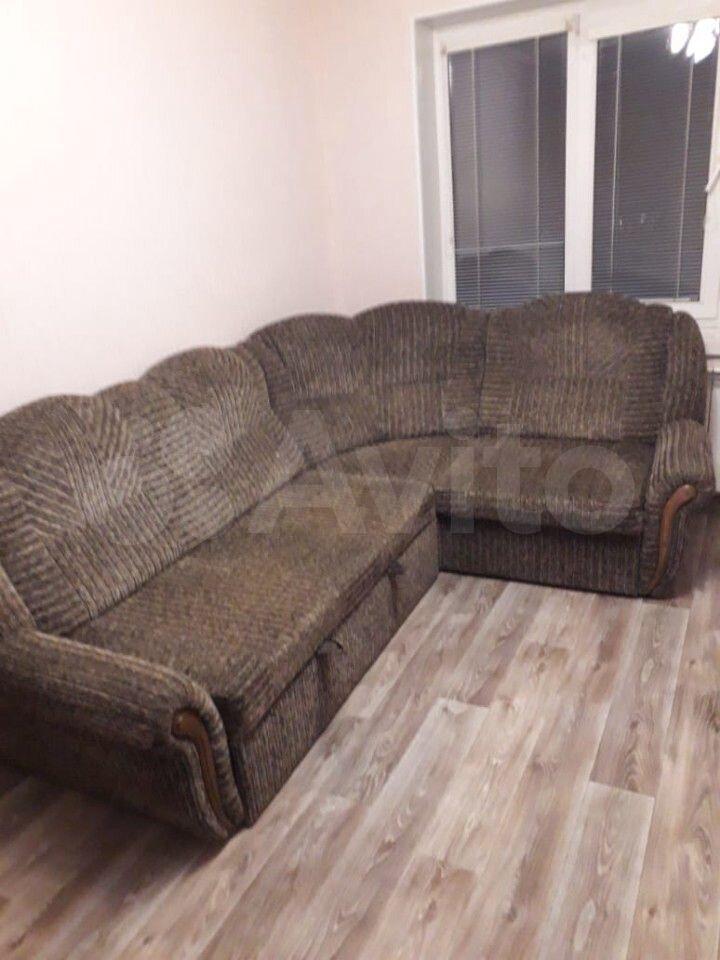 Однокомнатная квартира, из мебели — угловой диван, кухонный гарнитур, кухонный стол, стулья. Из бытовой техники — стиральная машинка-автомат, телевизор.