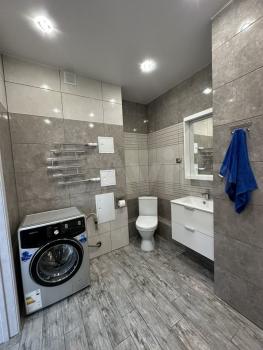 В квартире сделан Новый качественный ремонт (смотрите фото). Квартира расположена в 2 минутах ходьбы от общественной остановки. Квартира оснащена всем необходимым для комфортного проживания: шкаф-купе, телевизор, диван. Также есть полный кухонный гарнитур, холодильник, микроволновка, чайник, минимальный набор посуды. Ванная комната и туалет совмещенные, имеется стиральная машинка. (Вся мебель и техника абсолютно новая).
