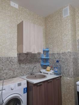Установлен встраиваемый кухонный гарнитур, с местом под стиральную машину, что позволяет экономить место. Планировка квартиры продумана таким образом чтоб на небольшой площади разместилась и отдельная спальня и гардеробная и кухня-студия-гостиная, где можно как разместиться компанией за столом, так и организовать дополнительные места для отдыха, что практически превращает квартиру в "двухкомнатную".