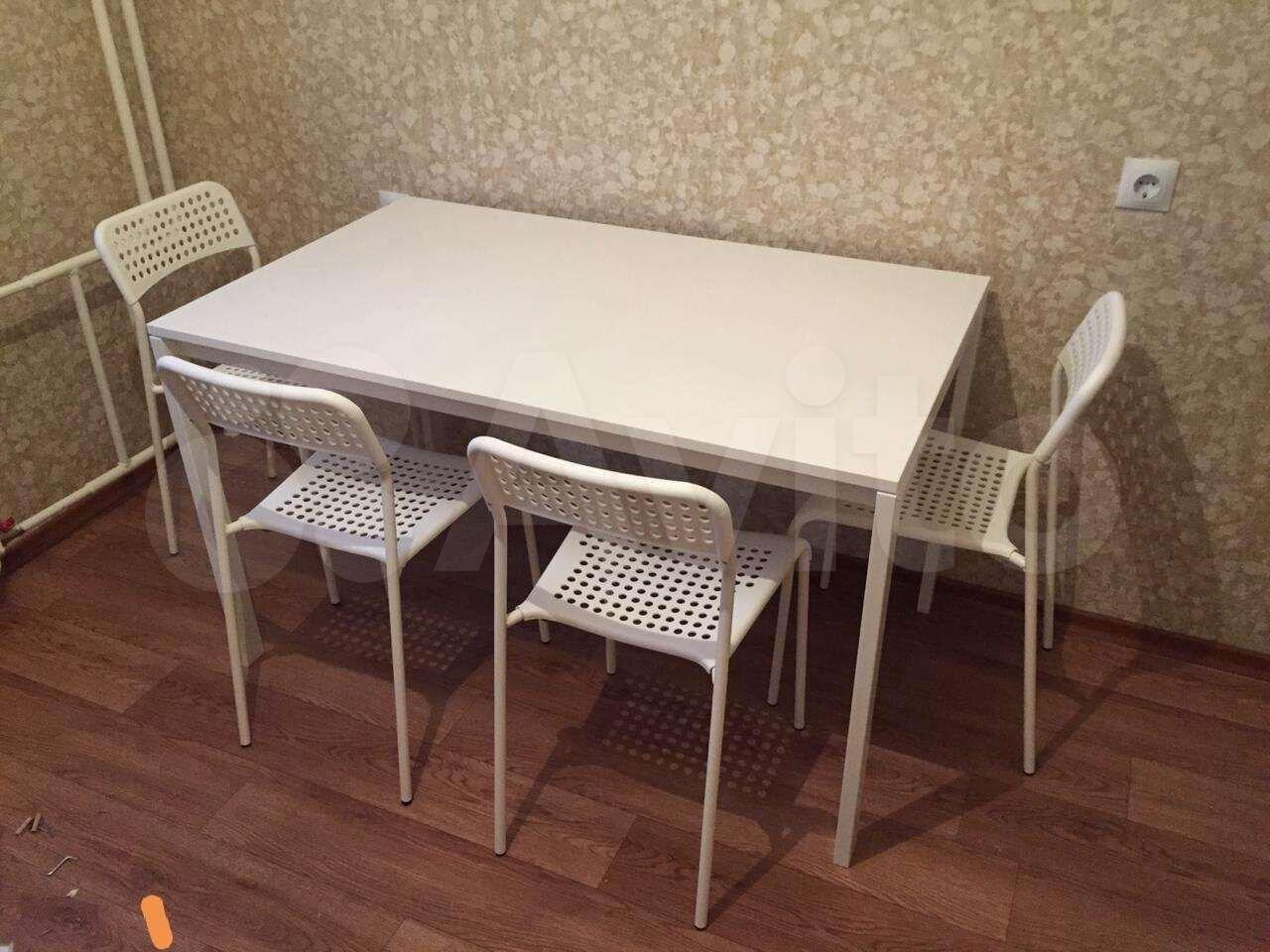 - холодильник, плита, небольшая новая кухня ( IKEA), (заказан новый стол IKEA + 4 белых табуретки);