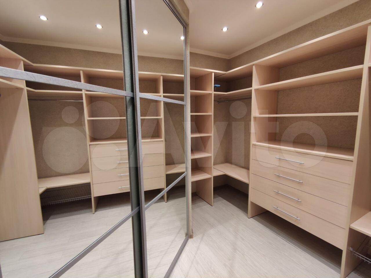 - Большая функциональная гардеробная комната с системой организованного хранения и зеркалами от пола до потолка;
