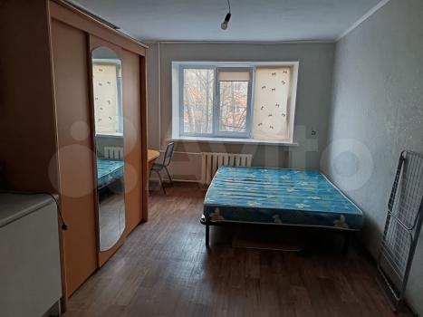 Комната в общежитии 13кв. м. на 4м этаже (5ти этажное здание) Секция из 4х комнат. Туалет, душ на секцию. Кухня на этаж. В комнате есть диван, шкаф, холодильник, стиральная машина.