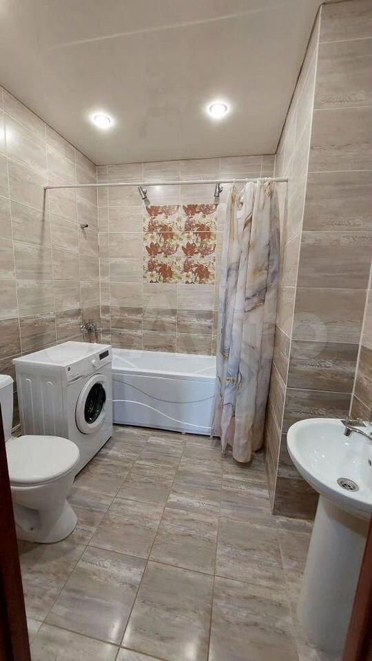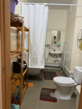 Санузел совмещенный, оборудован современной сантехникой и стиральной машиной. Из окон открывается вид на тихий двор.