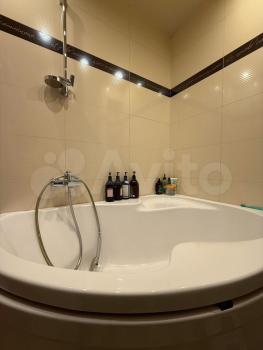 В квартире имеется все необходимое для комфортного проживания: кровать, кухонный гарнитур с обеденной зоной, холодильник, электро плита, духовой шкаф, стиральная машинка-автомат, ТВ, большая гардеробная.