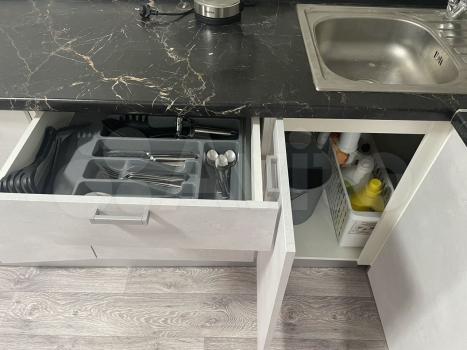 санузел - совмещённый, мебель - кухня, хранение одежды, спальные места, холодильник, плита, микроволновка, стиральная машина, посудомоечная машина, водонагреватель.