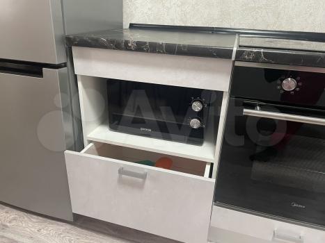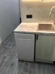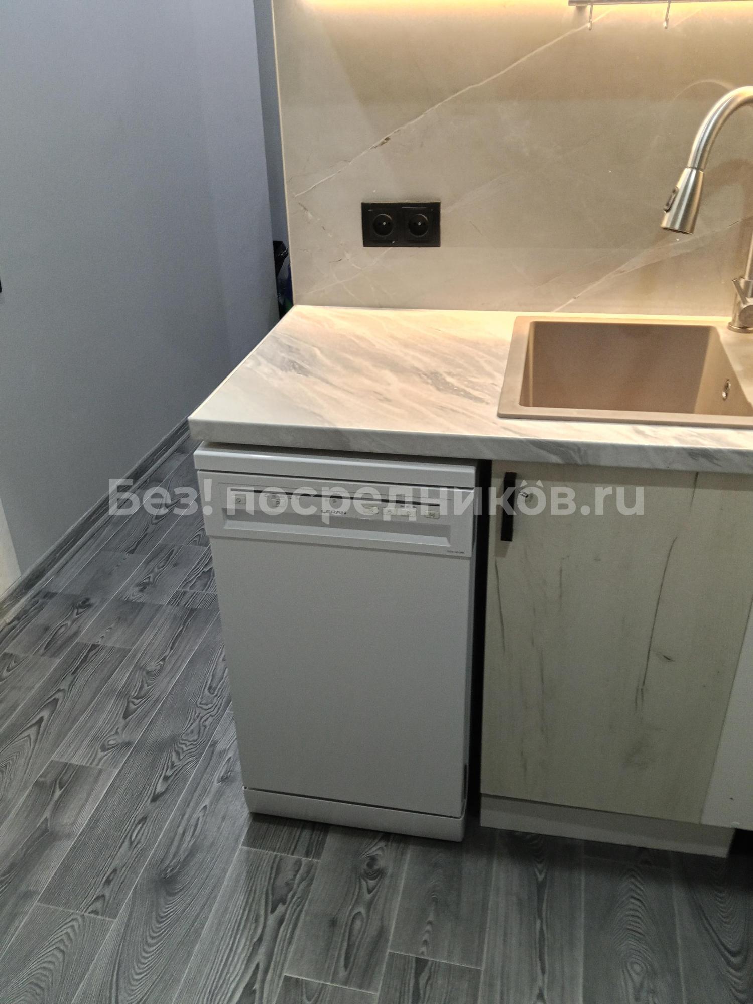 На кухне электрическая варочная поверхность, электрический духовой шкаф, холодильник, СВ печь, стиральная машина-автомат, установлен фильтр Аквафор с отдельным краном.
