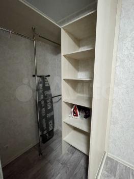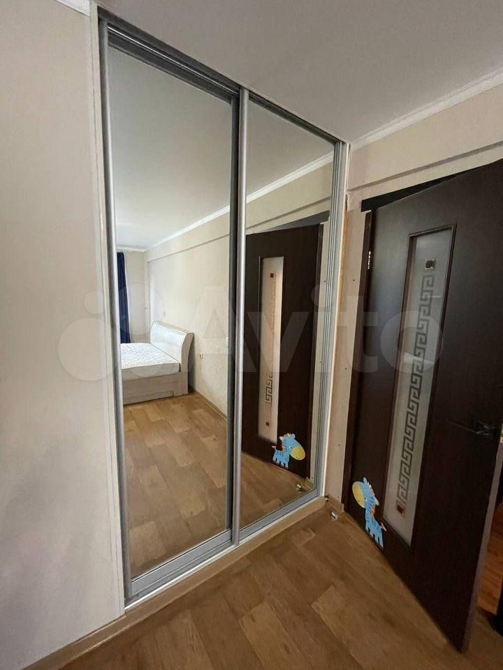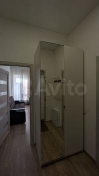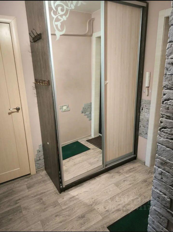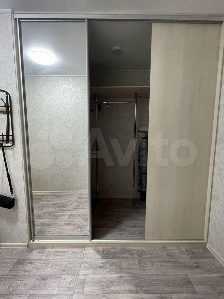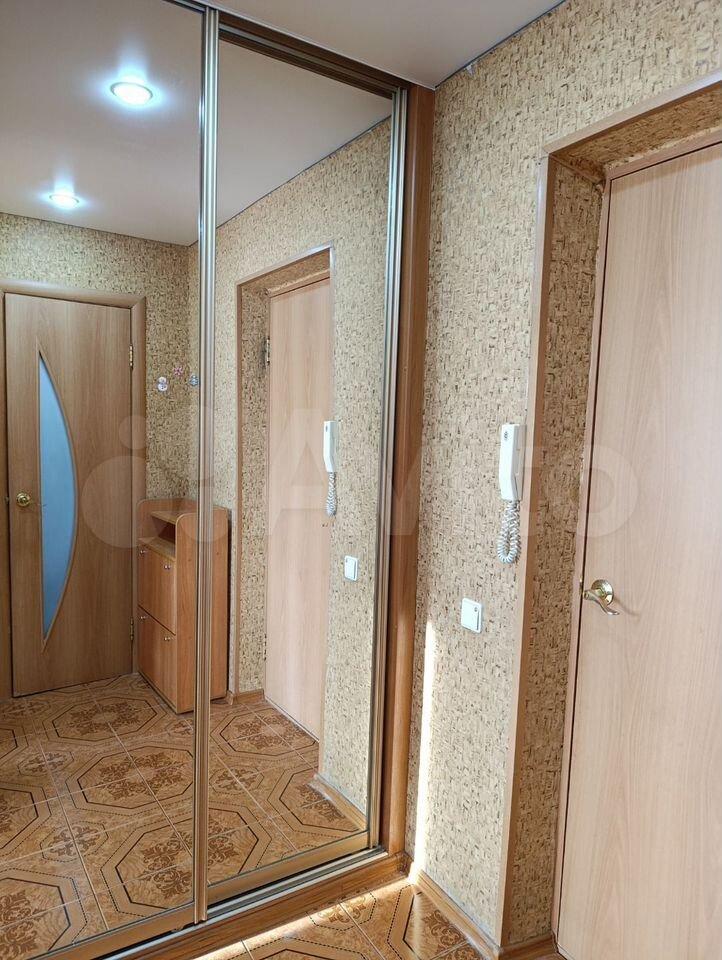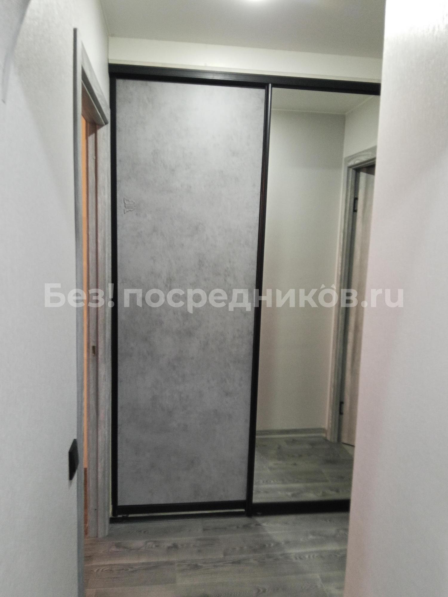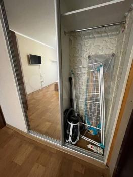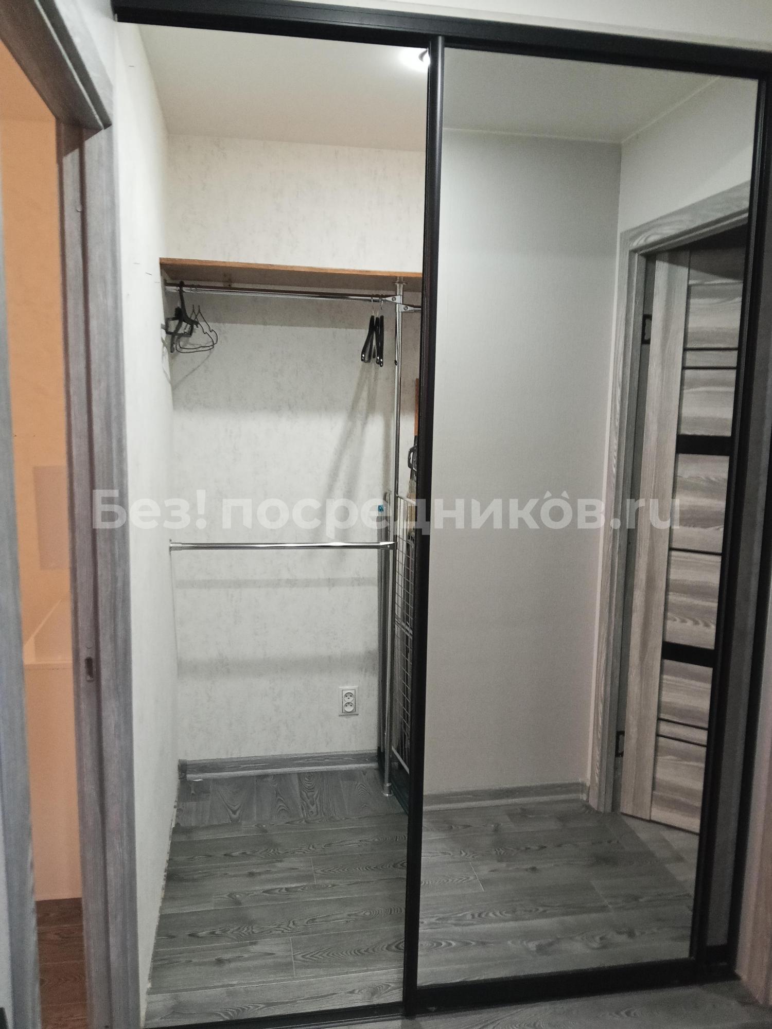 В прихожей встроенный и вместительный зеркальный шкаф-купе.