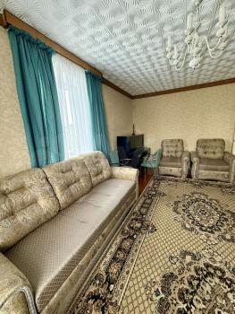 Дом кирпичный,в квартире тепло. Сделан ремонт,в квартире есть 2 дивана,шкаф,комод,телевизор ,стиральная машинка,холодильник ,микроволновка .Все необходимое есть для проживания.