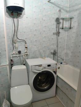 Санузел совмещённый, оснащён ванной и стиральной машиной Indеsit. Новый стеллаж для удобного хранения.