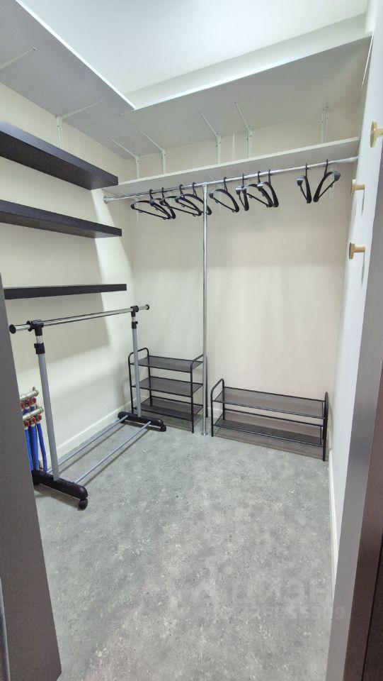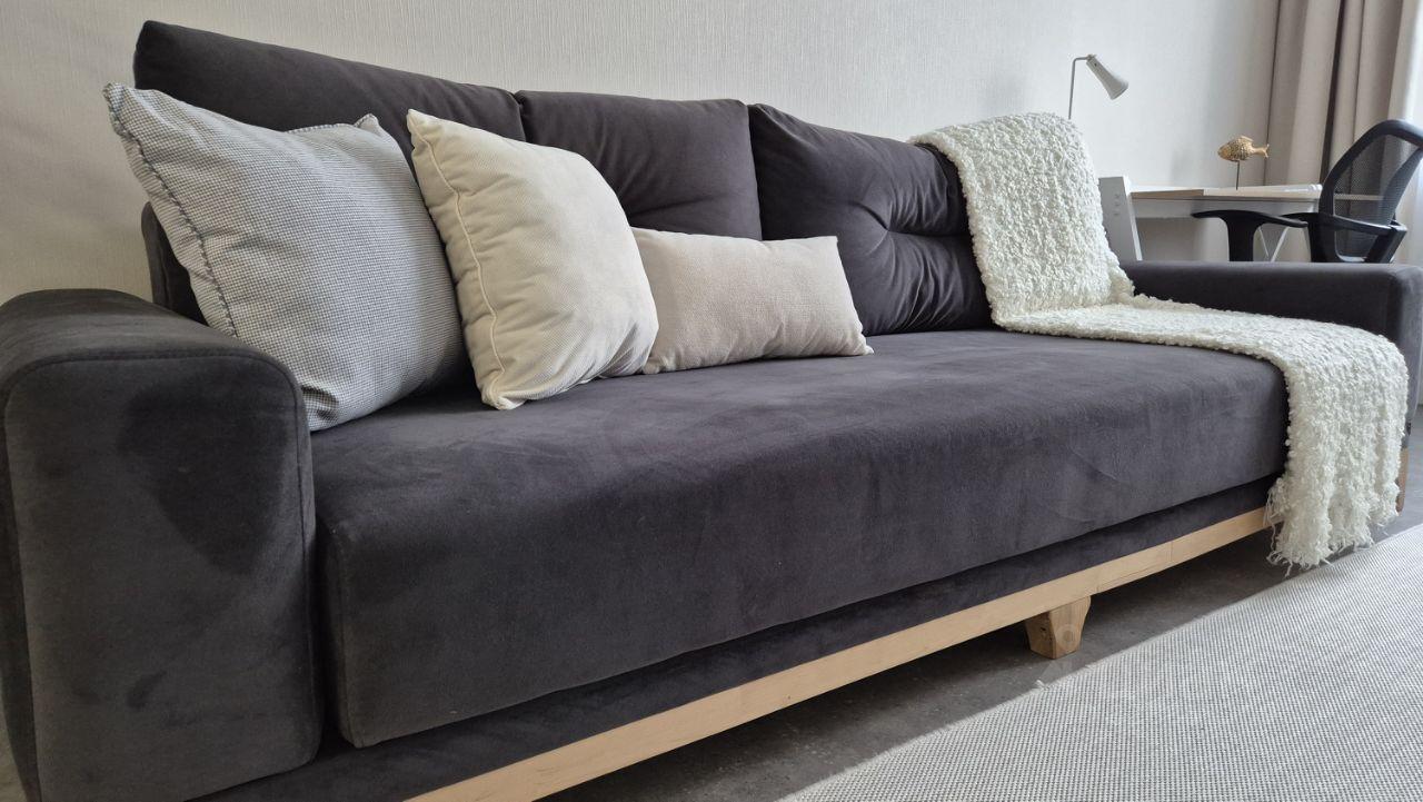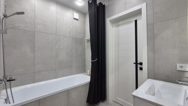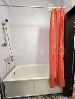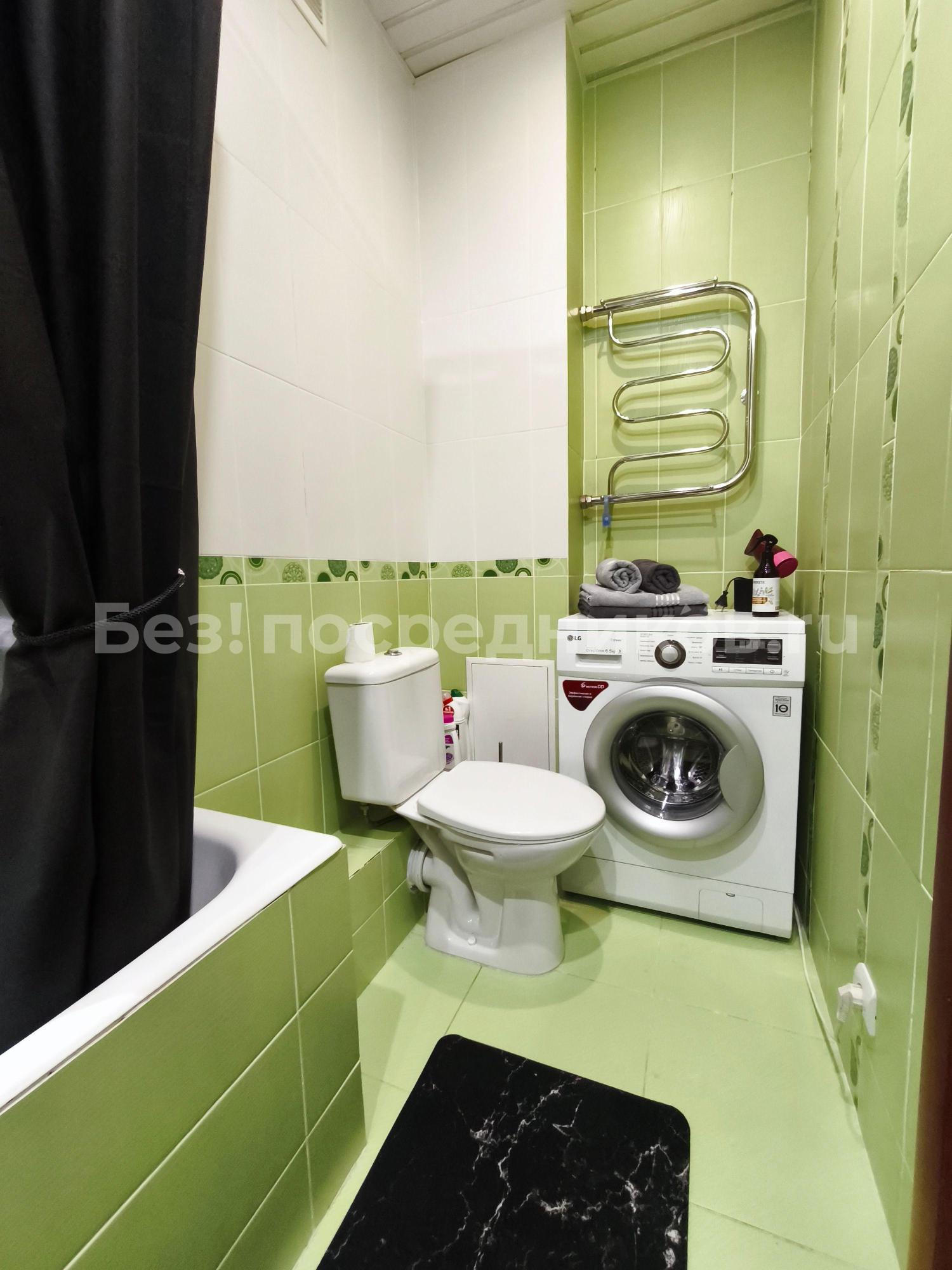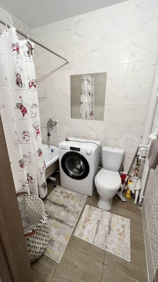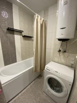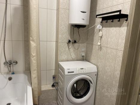 Санузел совмещенный, оборудован стиральной машиной и ванной. Из мебели — вместительные шкафы и удобный диван.