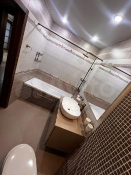 Санузел совмещенный, выполнен в светлых тонах с качественной отделкой и современной сантехникой. Лоджия застеклена и утеплена, что позволяет использовать ее круглый год.