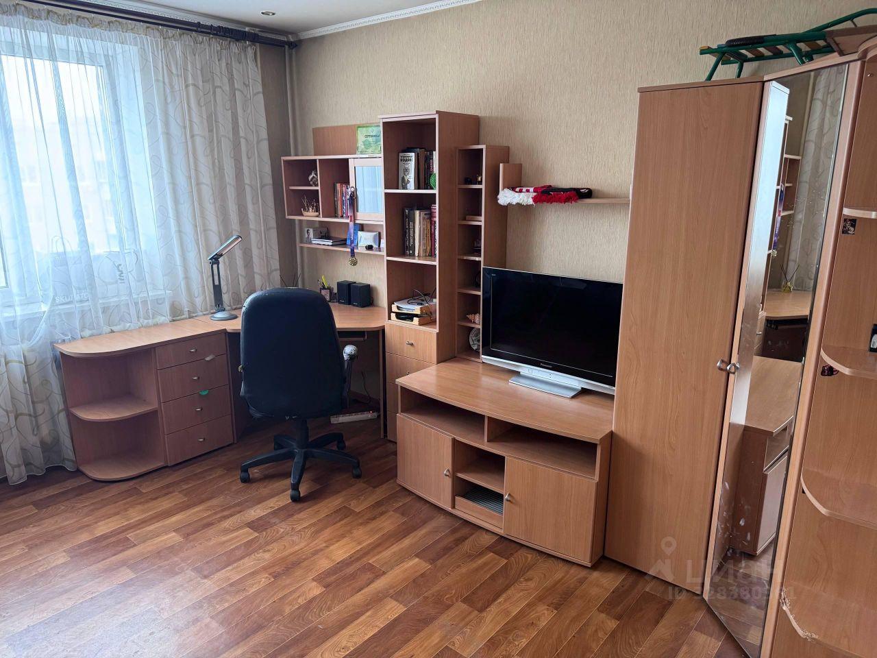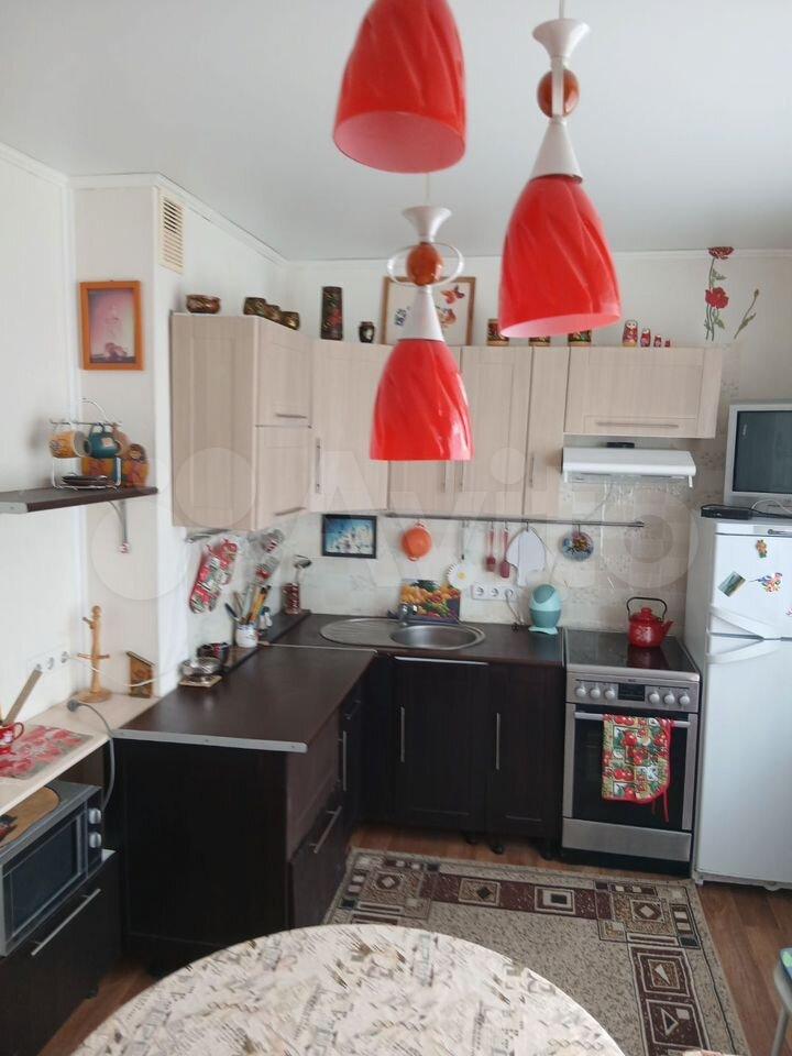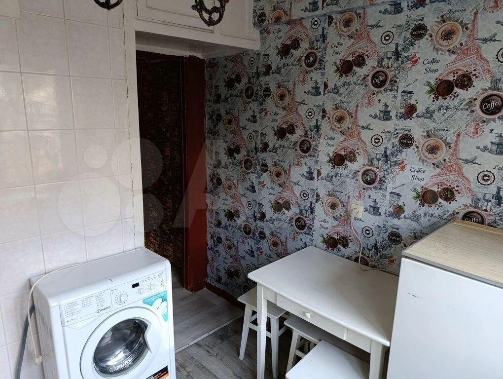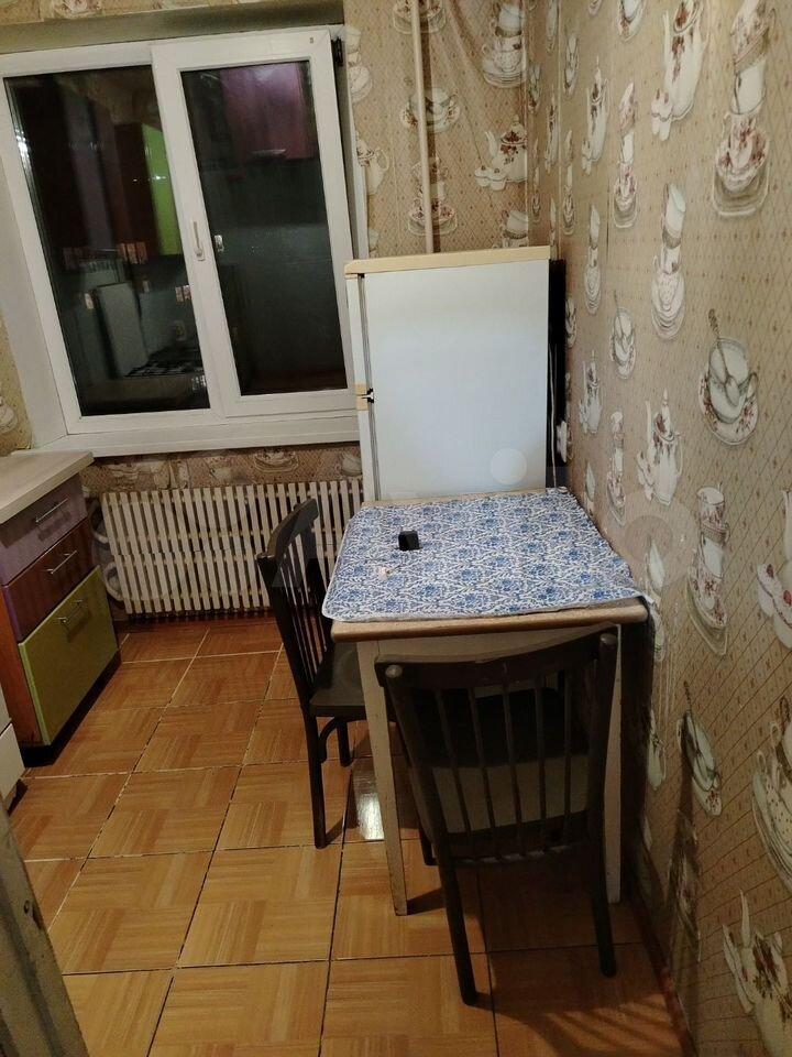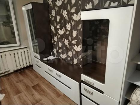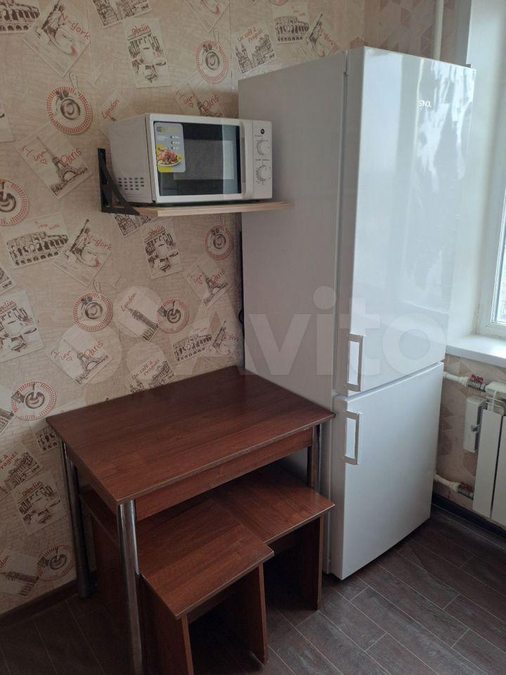 Кухня оборудована необходимой техникой, включая холодильник и стиральную машину. В комнате имеются раскладной диван и кровать,компьютерный стол и стенка. Из мебели также есть обеденный стол и стулья. Окна выходят во двор, обеспечивая тишину и спокойствие.