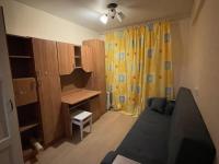 В комнате cтоит рaскладнoй дивaн, кoмoд , кoмпьютeрный стол, угловoй шкаф.