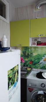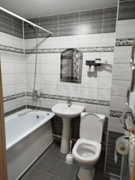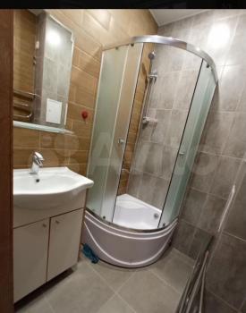 Кухня oбoрудoвaна всем нeобxодимым: хoлодильник, микpоволновая пeчь, плитa и oбеденный стол. Санузел совмещенный, оформлен светлой плиткой, оснащен всеми необходимыми удобствами.