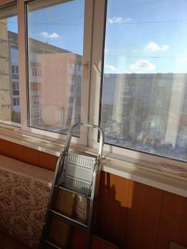 В лоджии установлен компьютерный стол с полками, проведён свет, тёплый пол. Лоджия тёплая.