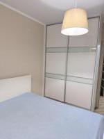 Всё необходимое для проживания есть, вся необходимая техника имеется( холодильник, микроволновая печь, чайник, стиральная машина). Большой диван в гостинной. Большая кровать в комнате и вместительный шкаф купе.