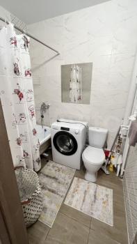 В квартире выполнен евроремонт, поэтому здесь чисто и современно. Полностью мебилирована, что позволяет сразу же заселиться. В наличии вся необходимая техника: холодильник и стиральная машина, индукционная плита, микроволновая печь.Санузел совмещенный, есть ванна.