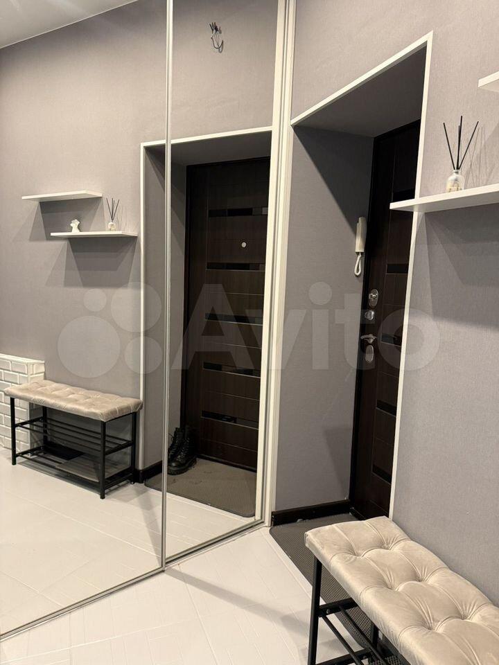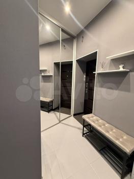 Коридор оснащён просторным шкафом-купе с зеркалами и новыми плечиками.