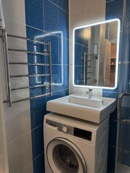 Санузел совмещен, сантехника во всей квартире менялась в 2024 году, качественная немецкая. Есть тёплый пол, водяной полотенцесушитель, водонагреватель Тhеrmех на 50 литров, двухместная гидромассажная ванна с различными функциями, подвесной унитаз и вытяжка. Все коммуникации скрыты для вашего удобства.