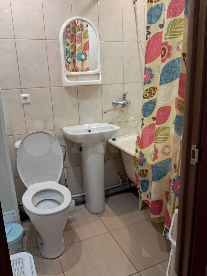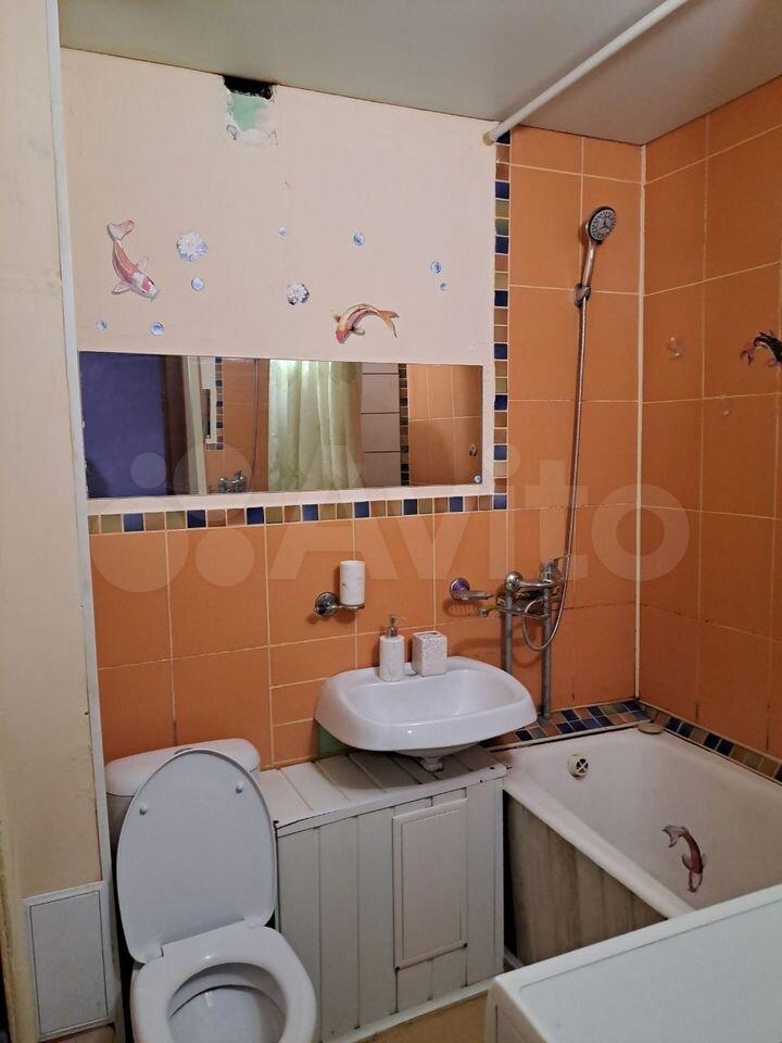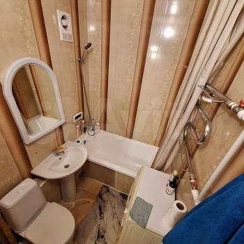 Санузел смежный (ванна и туалет вместе), в хорошем состоянии. Квартира аккуратная, чистая, готова к заселению.