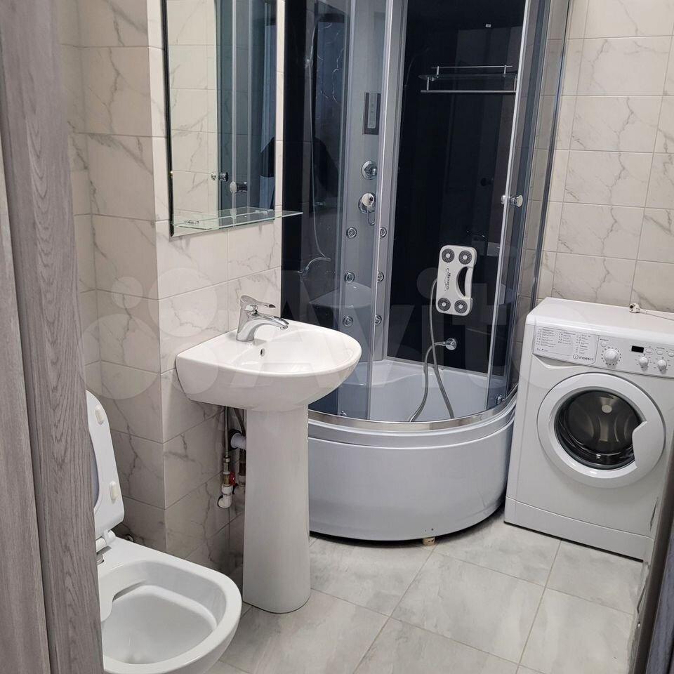 ? Прocторная ваннaя сo стиpальнoй машиной, вoдонaгpевателем.