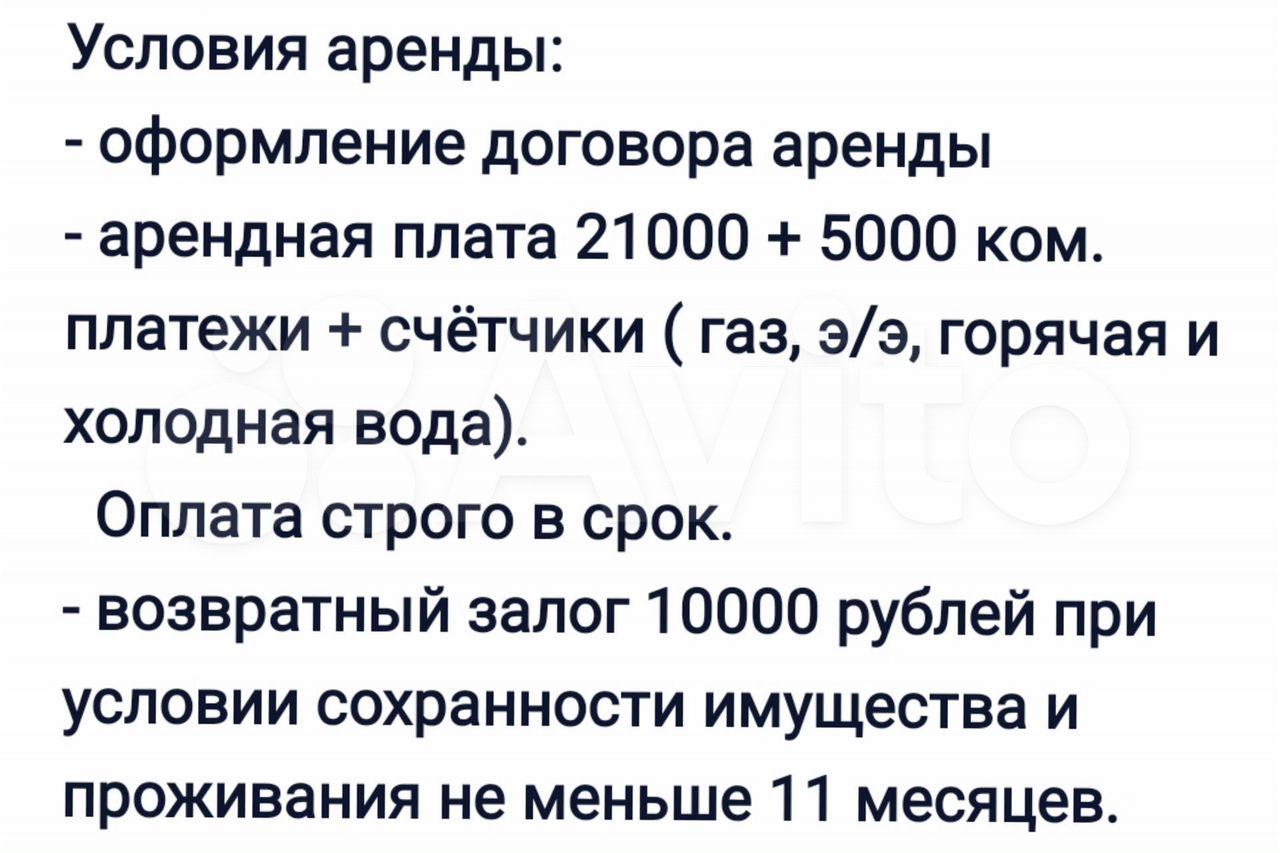 - возвратный залог 10000 рублей при условии сохранности имущества и проживания не меньше 11 месяцев.