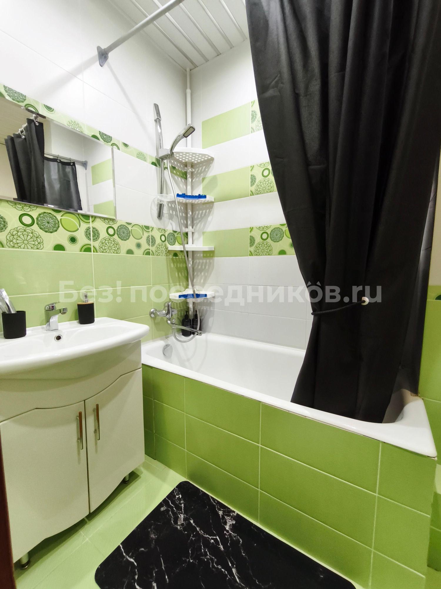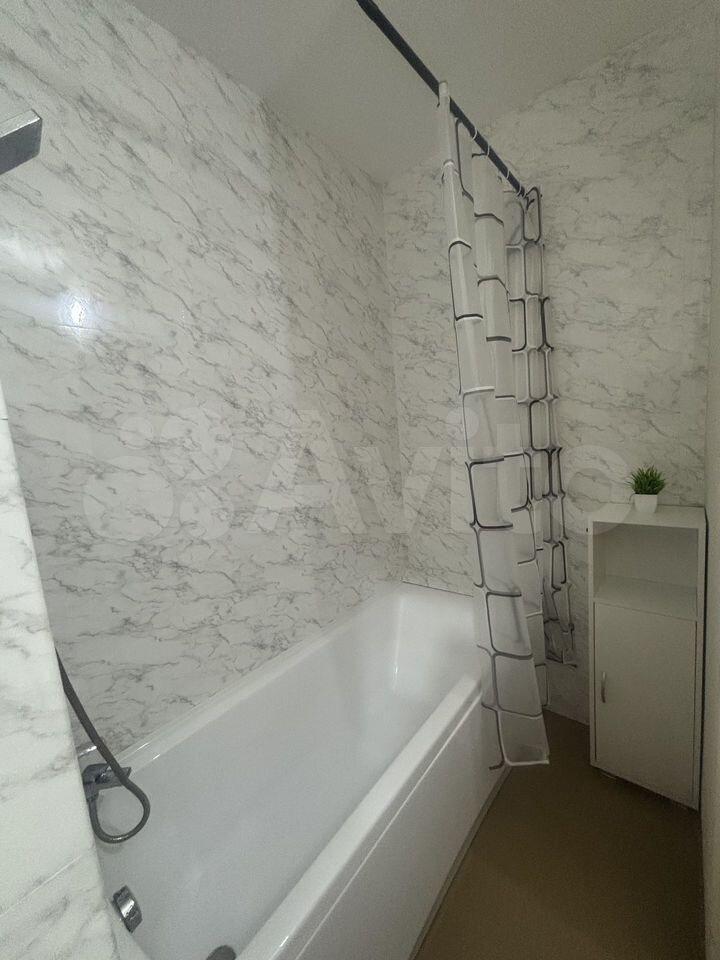 В квартире выполнен современный ремонт, такая обстановка позволяет сразу въехать и жить с комфортом. На кухне и в комнате есть вся необходимая мебель. Ванная комната оснащена полноценной ванной. Из техники в квартире есть кондиционер, холодильник, телевизор и стиральная машина, поэтому можно не беспокоиться о покупке бытовой техники.