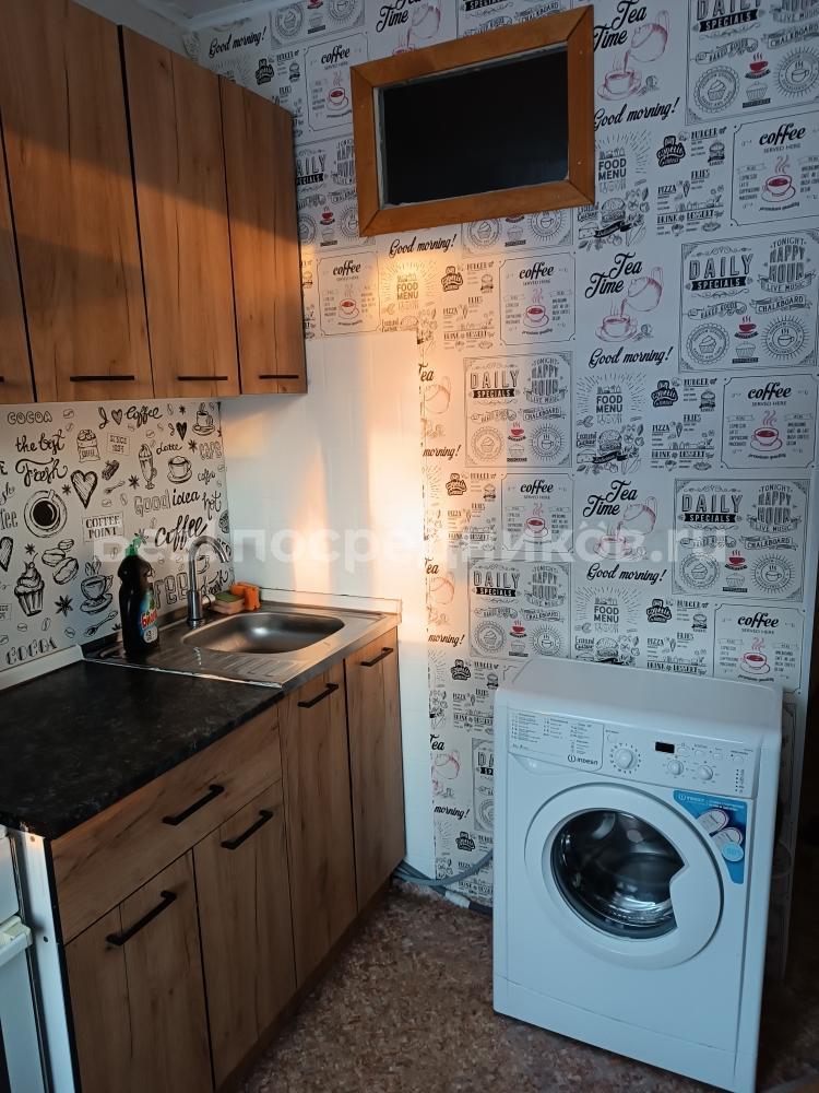 В квартире есть все необходимое для комфортной жизни: удобный раскладной диван, стеллаж, два шкафа, новая стиральная машинка, кухонный гарнитур, стол.