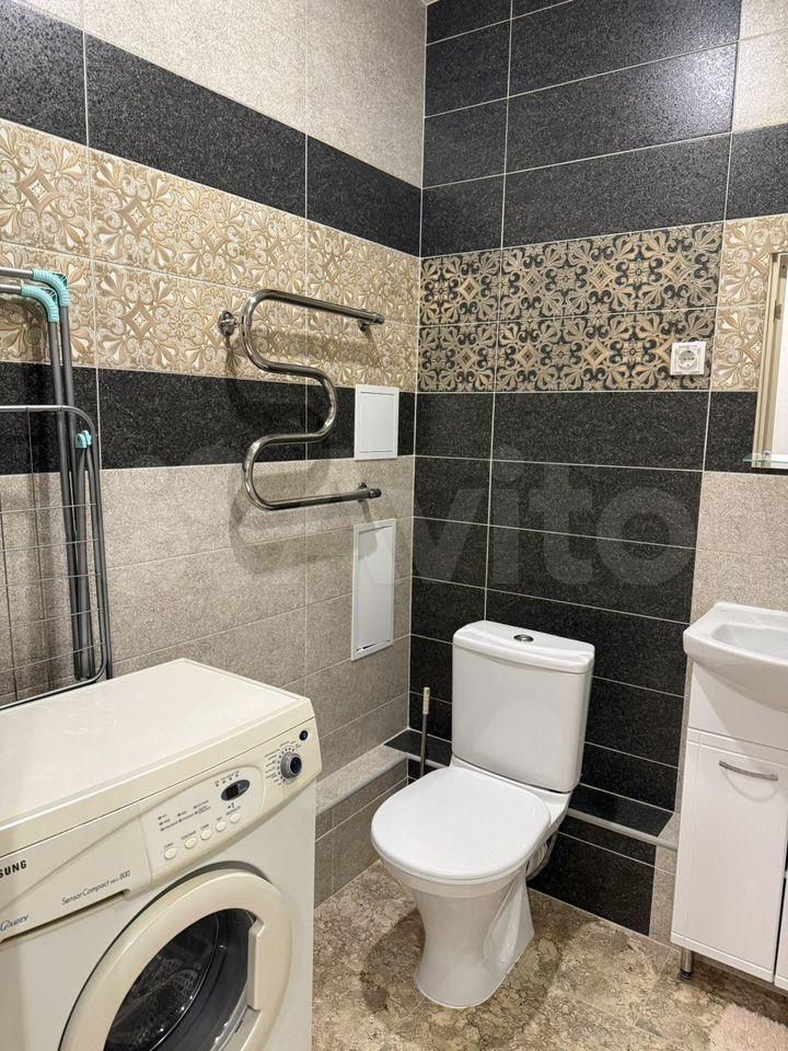 Кухня оснащена всем необходимым: газовая плита, микроволновая печь и стиральная машина. Санузел совмещенный, оформлен современной плиткой.