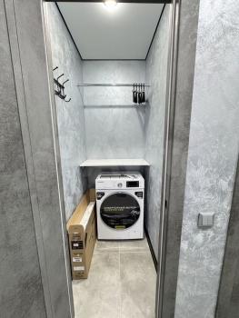 Кухня оснащена необходимой бытовой техникой: холодильником, плитой и микроволновой печью, эл.чайник, мультиварка. Ванная комната совмещенная, с стиральной машиной.