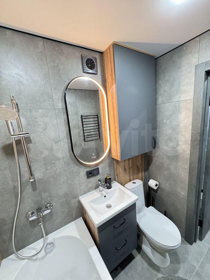 В квартире сделан дизайнерский ремонт. Пространство обустроено современной мебелью как в комнате, так и на кухне. Из техники есть всё необходимое для комфортного проживания: кондиционер, холодильник, телевизор и стиральная машина. Санузел совмещенный, оборудован ванной. На лоджии можно организовать дополнительное место для отдыха или хранения. Интернет подключён, поэтому можно сразу пользоваться всеми благами цивилизации.