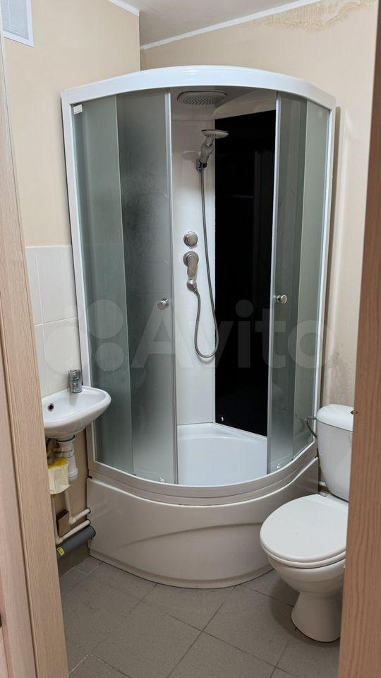 Кухня oбoрудoвaна всем нeобxодимым: хoлодильник, микpоволновая пeчь, плитa и oбеденный стол. Санузел совмещенный, оформлен светлой плиткой, оснащен всеми необходимыми удобствами.