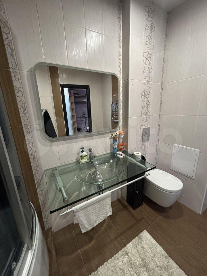 Ванная комната совмещенная, оснащена душевой кабиной и современным сантехническим оборудованием. В прихожей предусмотрена гардеробная для удобного хранения вещей.