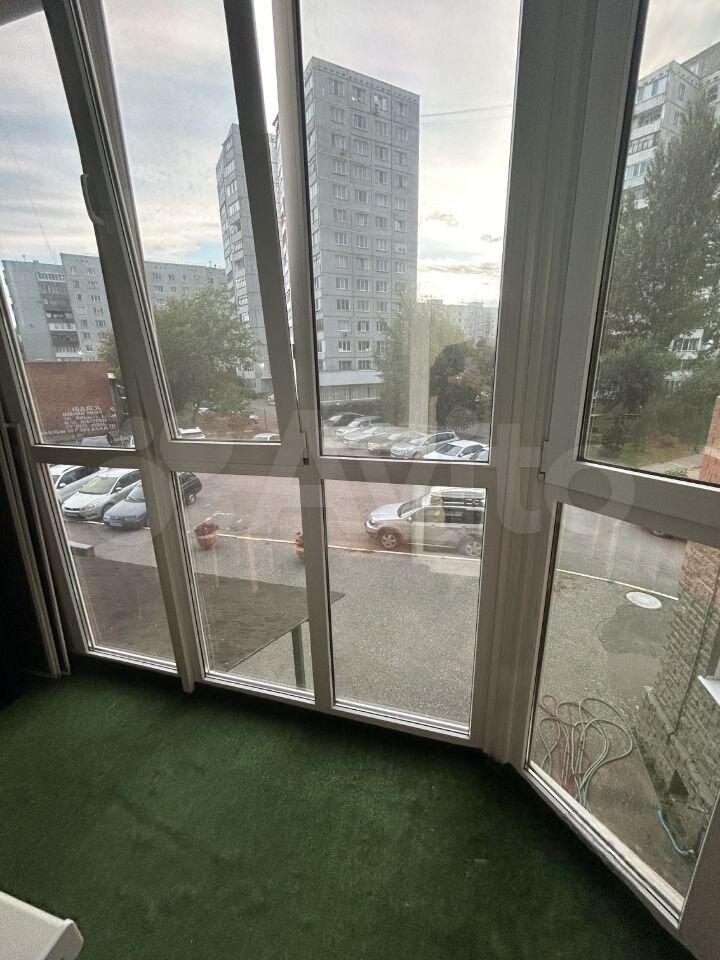 Балкон застеклен, с его помощью можно наслаждаться видом на зеленый двор. В доме есть пассажирский и грузовой лифты, а также парковка за шлагбаумом во дворе.