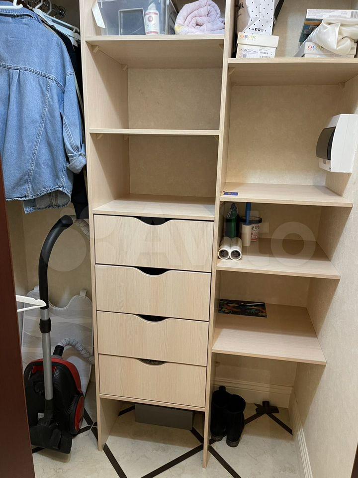В квартире есть все необходимое для комфортной жизни: удобный раскладной диван, стеллаж, два шкафа, новая стиральная машинка, кухонный гарнитур, стол.